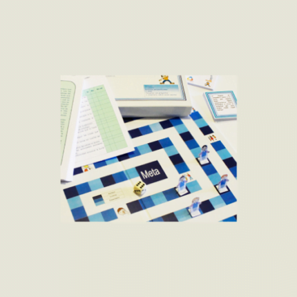 Materiales: 1 Tablero – 4 Fichas personificadas – 1 Dado – Tarjetas con preguntas – 4 set con frases